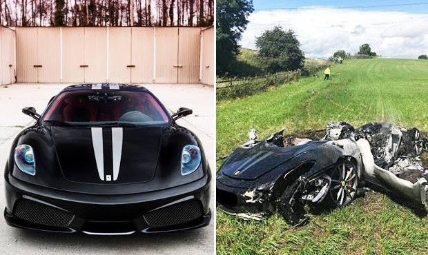 Somewhere in Britain, a sad, sad man is mourning the loss of a jet black Ferrari 430 Scuderia, which went up in flames an hour after it was purchased Thursday afternoon.